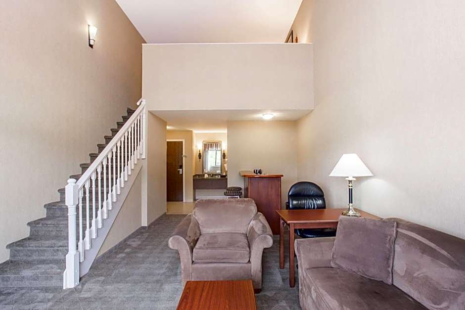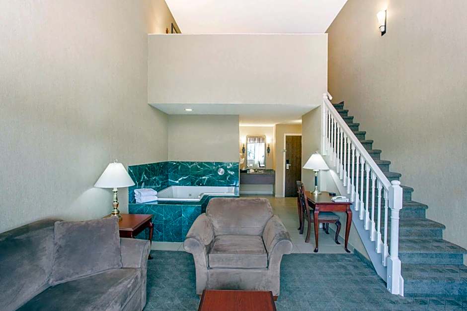This air-conditioned loft suite features a hot tub. A small refrigerator and coffee and tea maker are offered. A flat-screen TV and complimentary WiFi are provided as well. A complimentary newspaper, iron and ironing board and hairdryer are included.